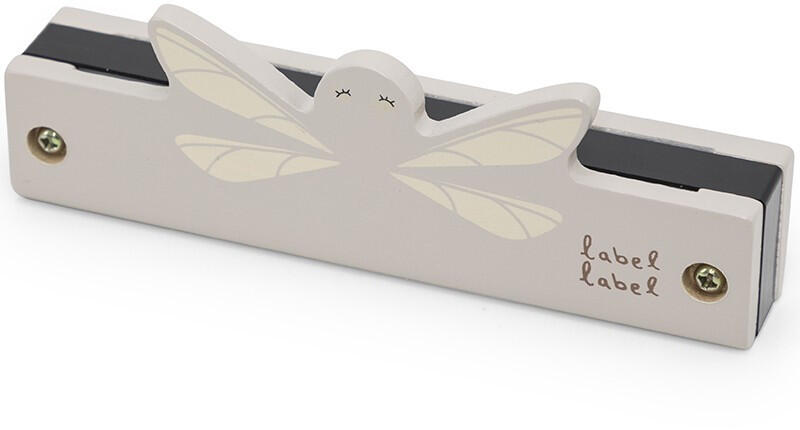 A kis zenészünk imádni fogja ennek az aranyos szitakötővel díszített nugát színű szájharmonikának a hangját! A szájharmonika különböző lyukaira fújva különböző hangokat és hangszíneket fog tudni játszani. Bővítsd kis zenekarodat a Label Label más hangszereinek egyikével!